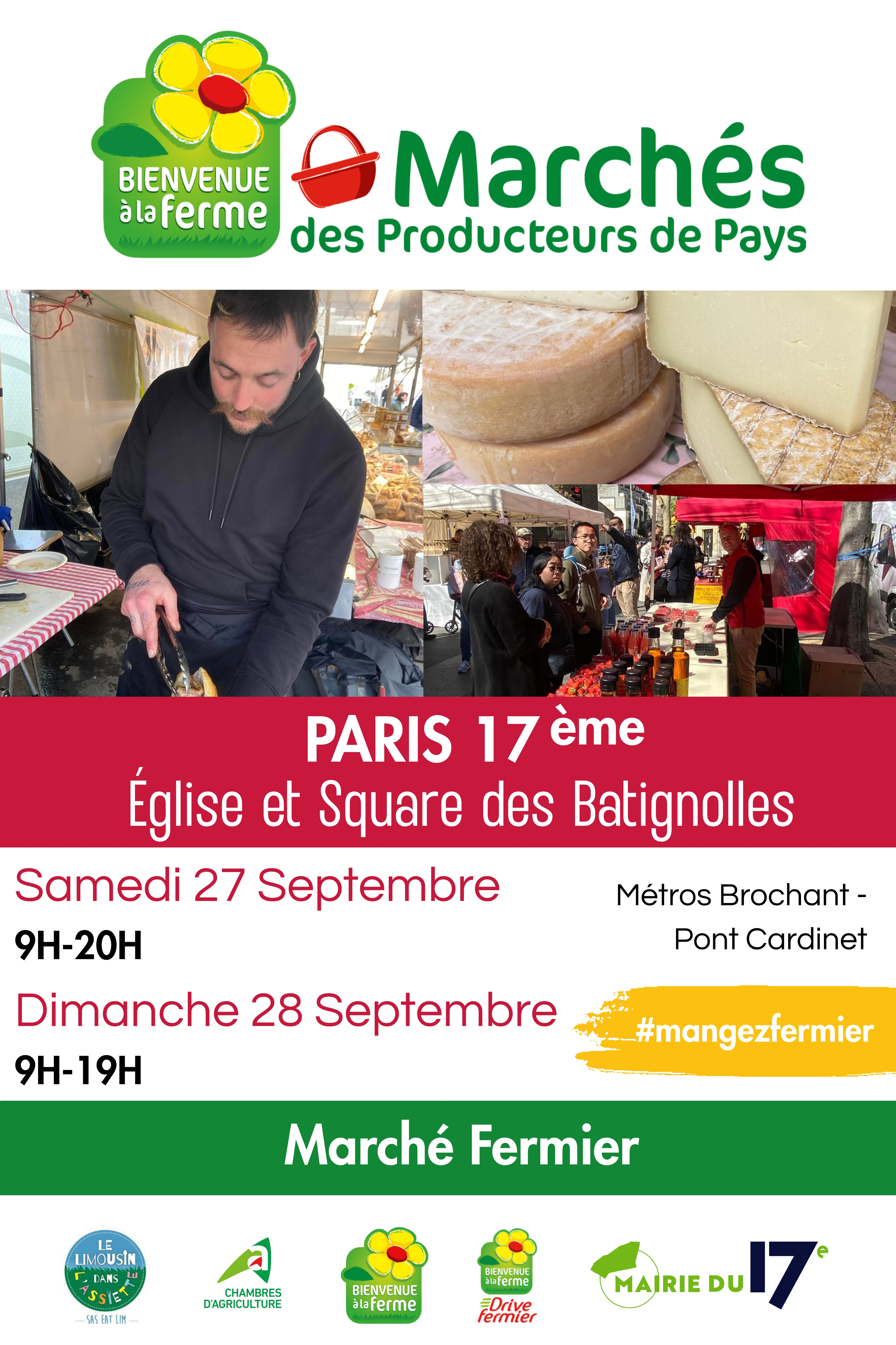 Retrouvez-nous à l'Église et Square des Batignolles – Paris 17e (M° Brochant & Pont Cardinet) ce samedi 27 septembre de 9h à 20h et ce dimanche 28 septembre de 9h à 19h